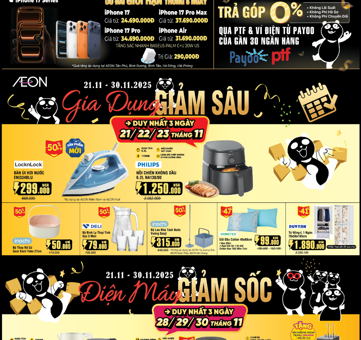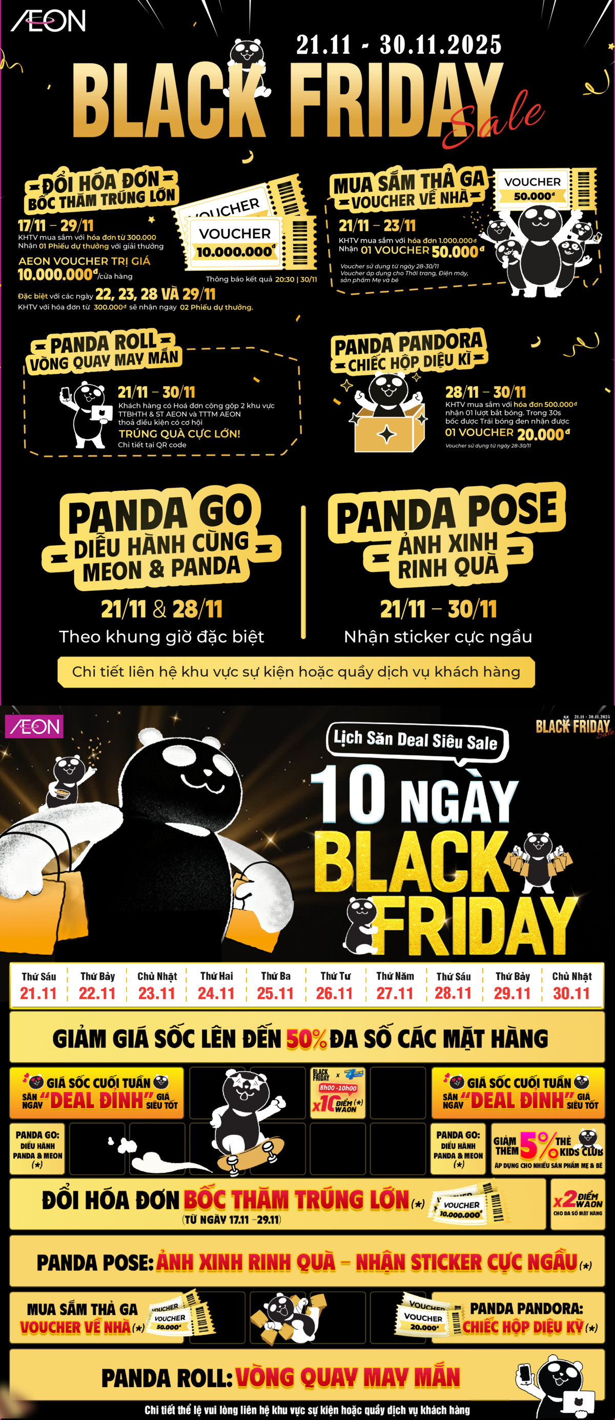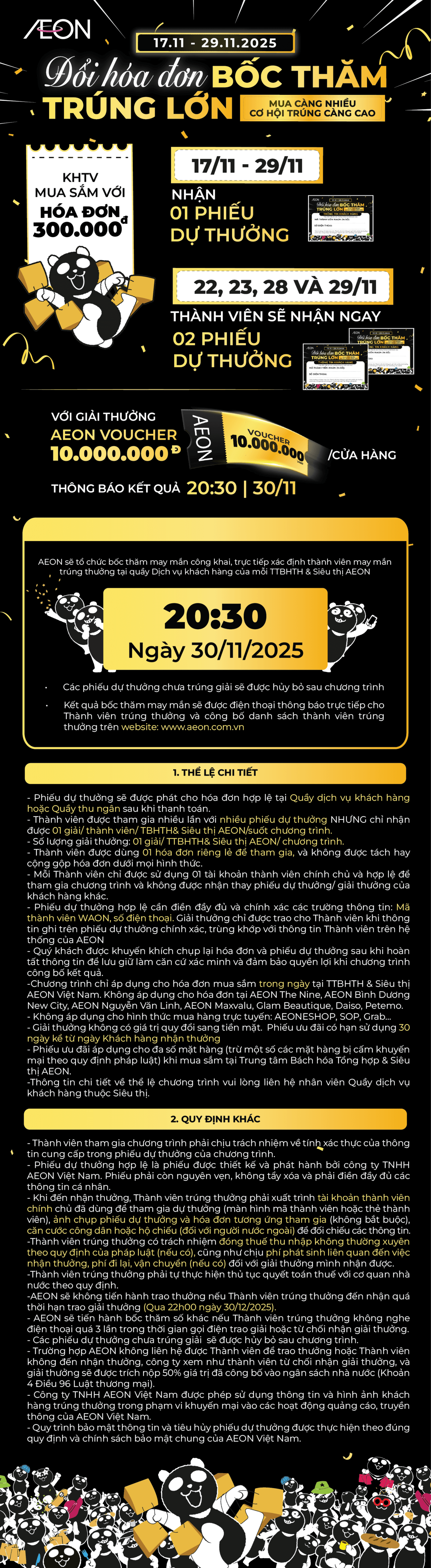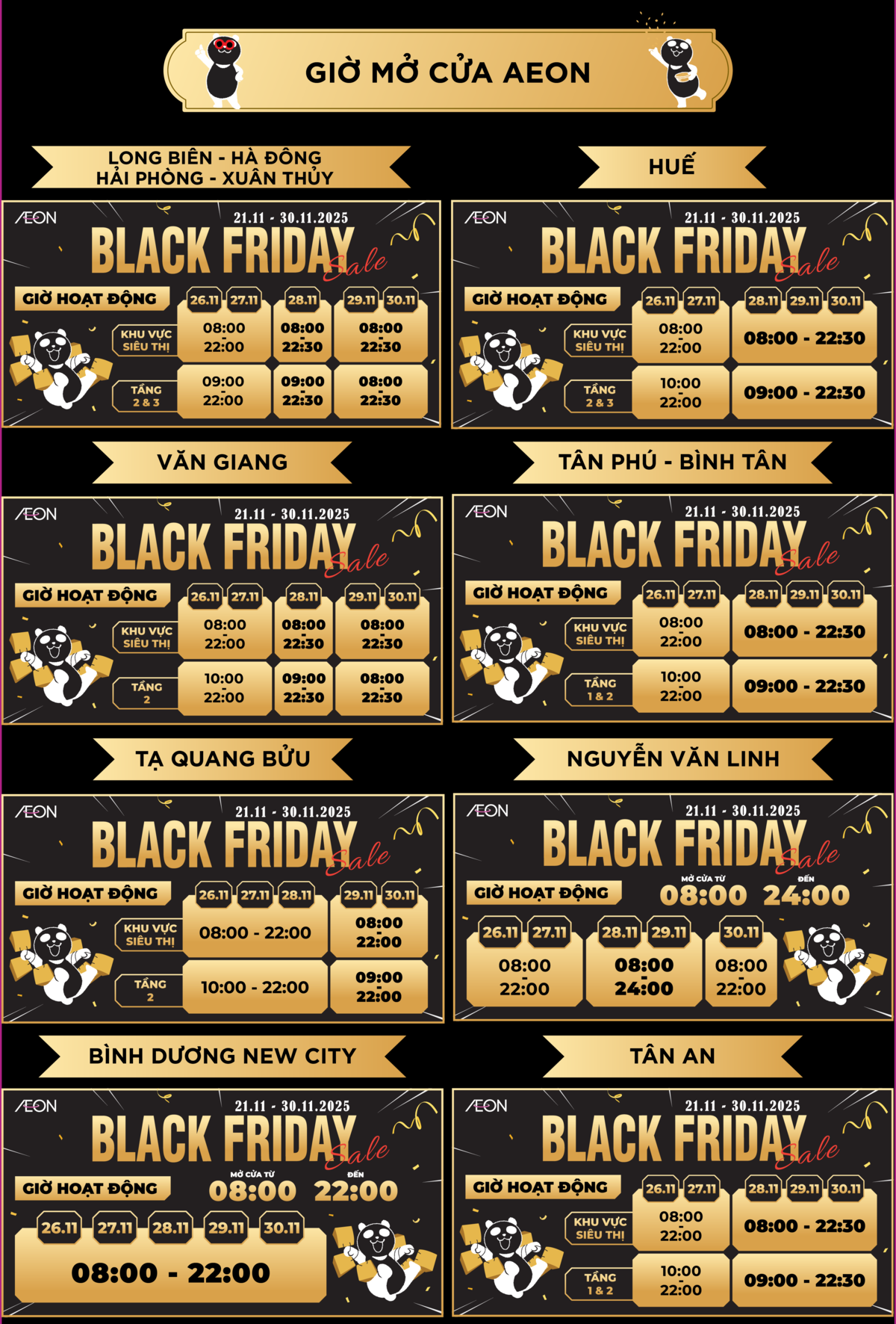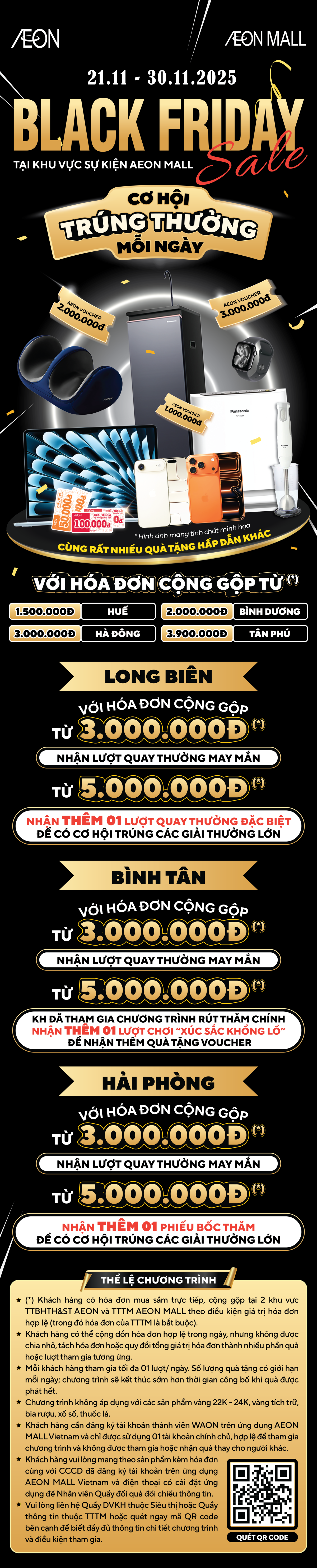 AEON Tân An, AEON Xuân Thuỷ, AEON Tạ Quang Bửu, AEON Huế, AEON Tân Phú Celadon, AEON Bình Tân, AEON Hà Đông, AEON Long Biên, AEON Hải Phòng Lê Chân, AEON Bình Dương Canary