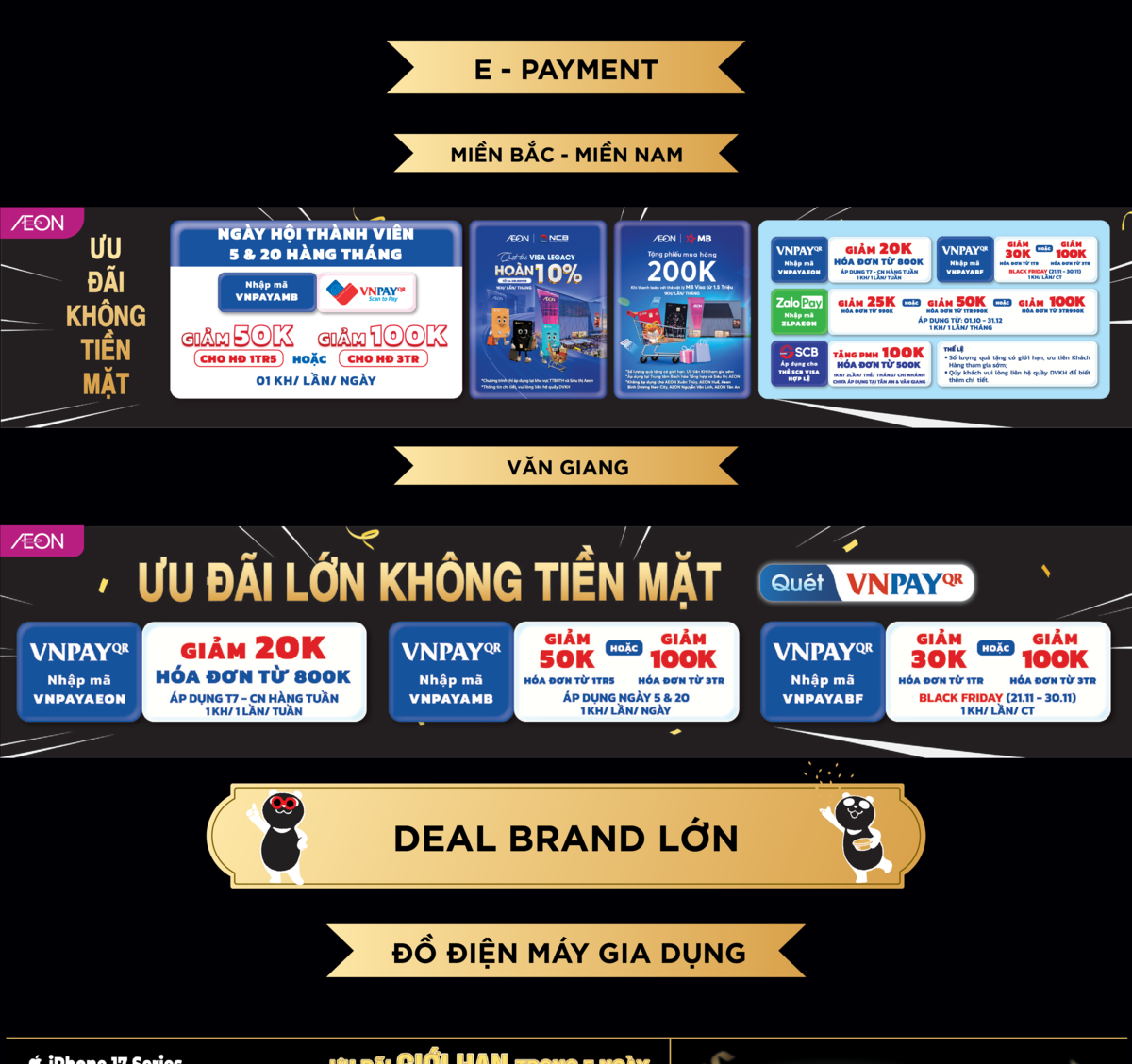 AEON Xuân Thuỷ, AEON Huế, AEON Tạ Quang Bửu, AEON Tân Phú Celadon, AEON Bình Tân, AEON Hà Đông, AEON Long Biên, AEON Hải Phòng Lê Chân, AEON Bình Dương New City, AEON The Nine, AEON Nguyễn Văn Linh, AEON Bình Dương Canary