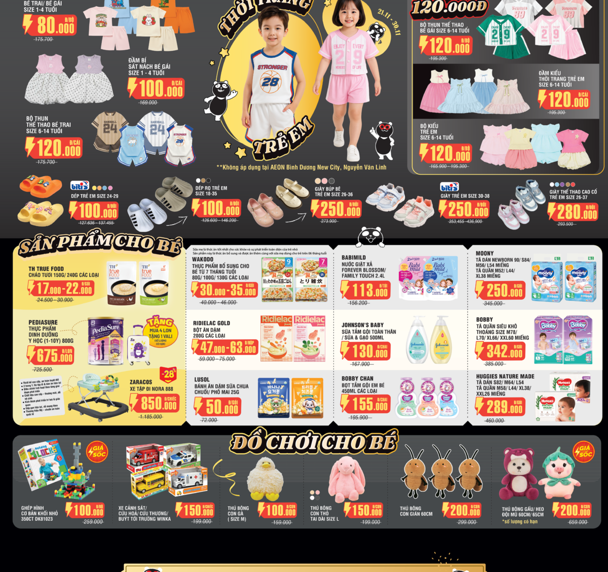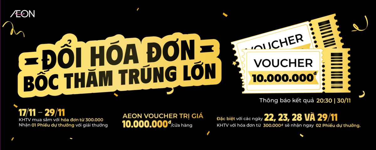 AEON Tân An, AEON Xuân Thuỷ, AEON Tạ Quang Bửu, AEON Huế, AEON Tân Phú Celadon, AEON Bình Tân, AEON Hà Đông, AEON Long Biên, AEON Hải Phòng Lê Chân, AEON Bình Dương Canary