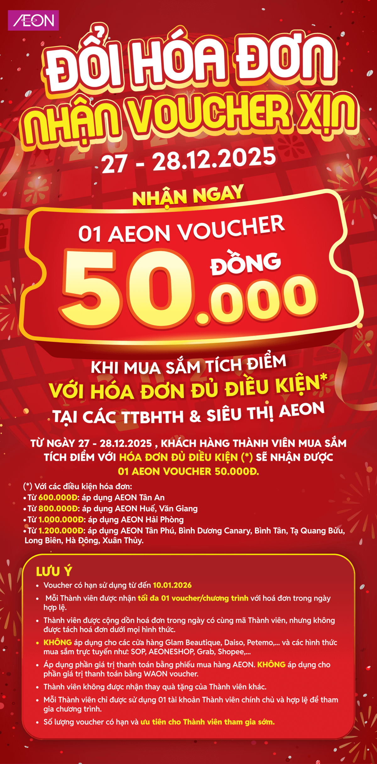 AEON MIDORI PARK, AEON Xuân Thuỷ, AEON Tân An, AEON Văn Giang, AEON Tân Phú Celadon, AEON Bình Tân, AEON Tạ Quang Bửu, AEON Nguyễn Văn Linh, AEON Hà Đông, AEON Long Biên, AEON Hải Phòng Lê Chân, AEON Bình Dương Canary, AEON Bình Dương New City, AEON The Nine, AEON Huế