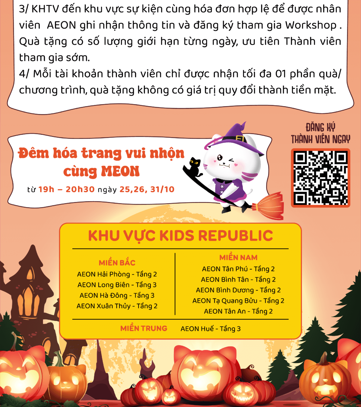 AEON Xuân Thuỷ, AEON Tạ Quang Bửu, AEON Huế, AEON Tân Phú Celadon, AEON Bình Tân, AEON Hà Đông, AEON Long Biên, AEON Hải Phòng Lê Chân, AEON Bình Dương Canary