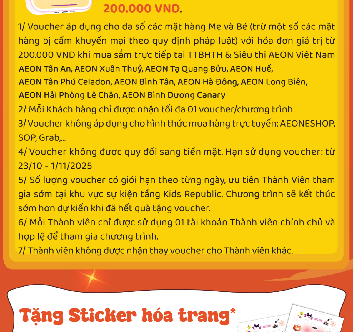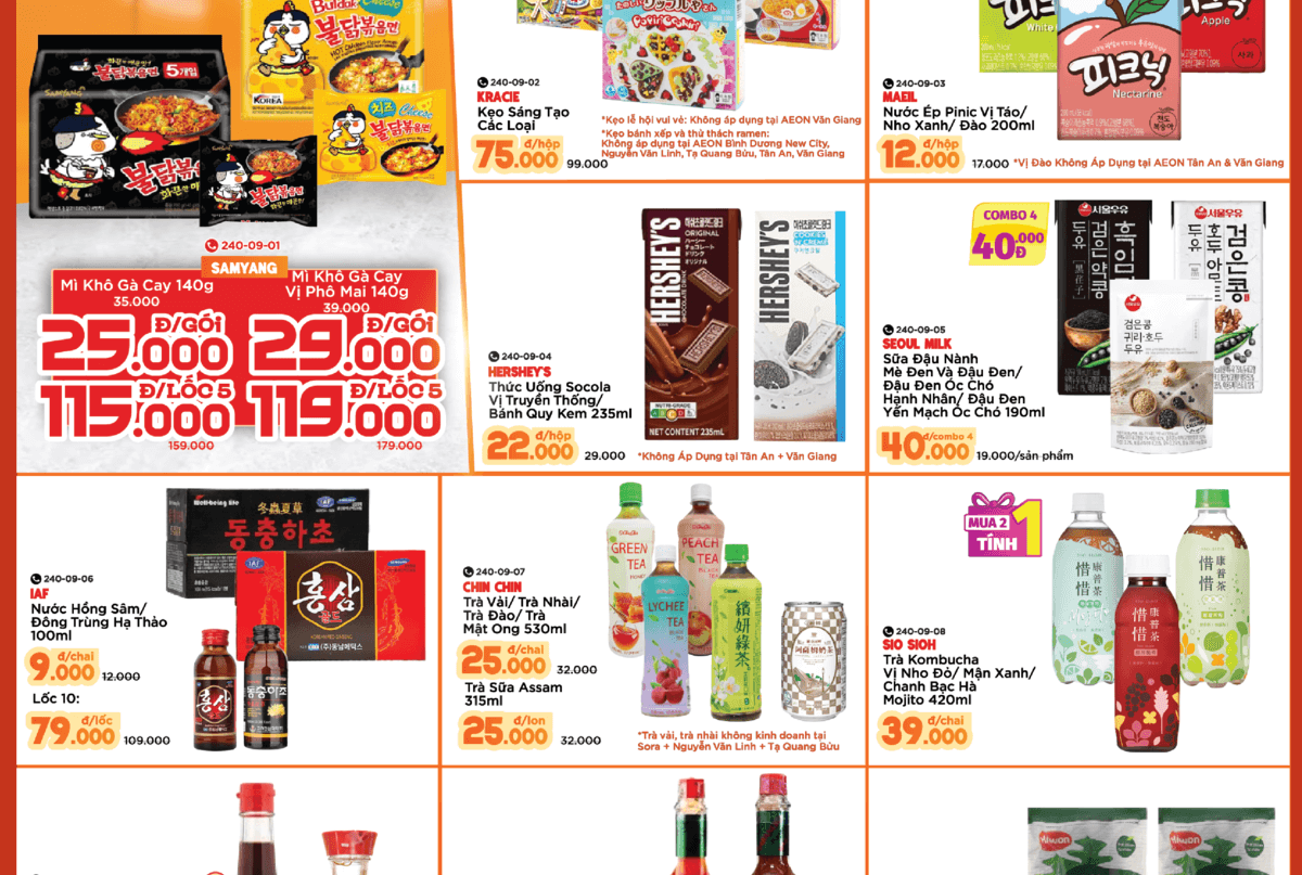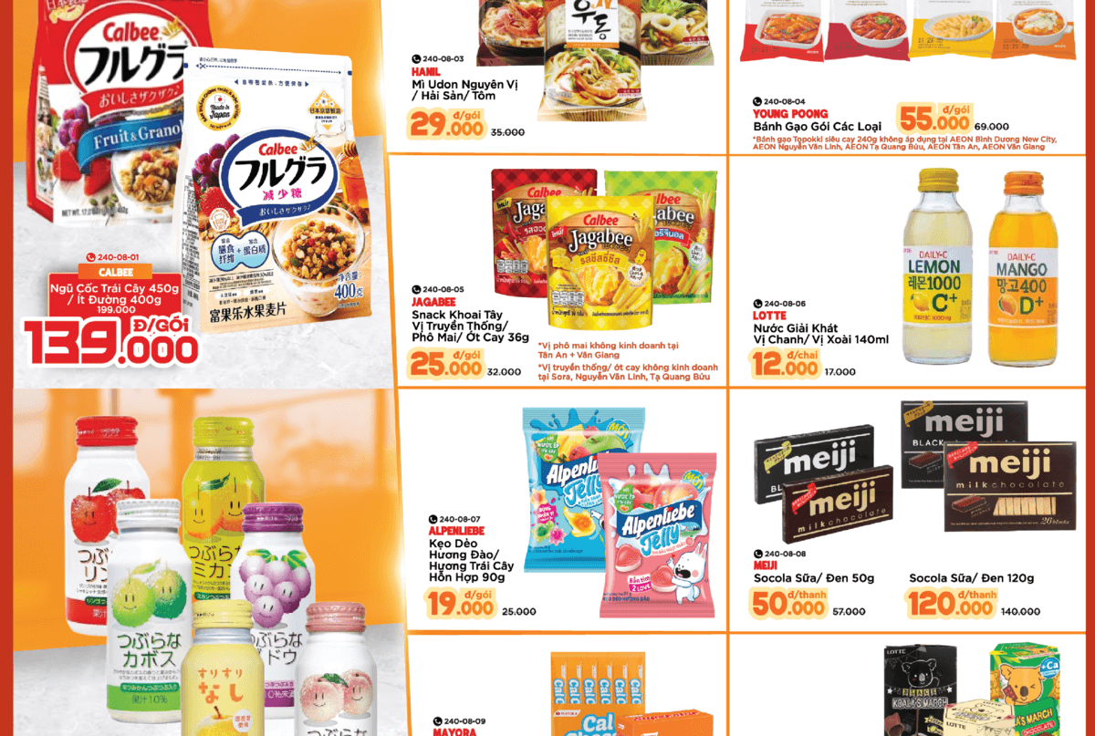 AEON Tân An, AEON Xuân Thuỷ, AEON Tạ Quang Bửu, AEON Huế, AEON Tân Phú Celadon, AEON Bình Tân, AEON Hà Đông, AEON Long Biên, AEON Hải Phòng Lê Chân, AEON Bình Dương Canary