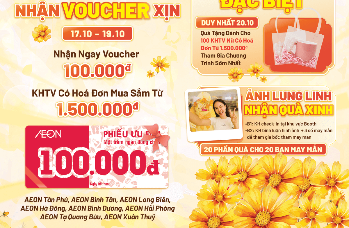 AEON Xuân Thuỷ, AEON Tạ Quang Bửu, AEON Huế, AEON Tân Phú Celadon, AEON Bình Tân, AEON Hà Đông, AEON Long Biên, AEON Hải Phòng Lê Chân, AEON Bình Dương Canary