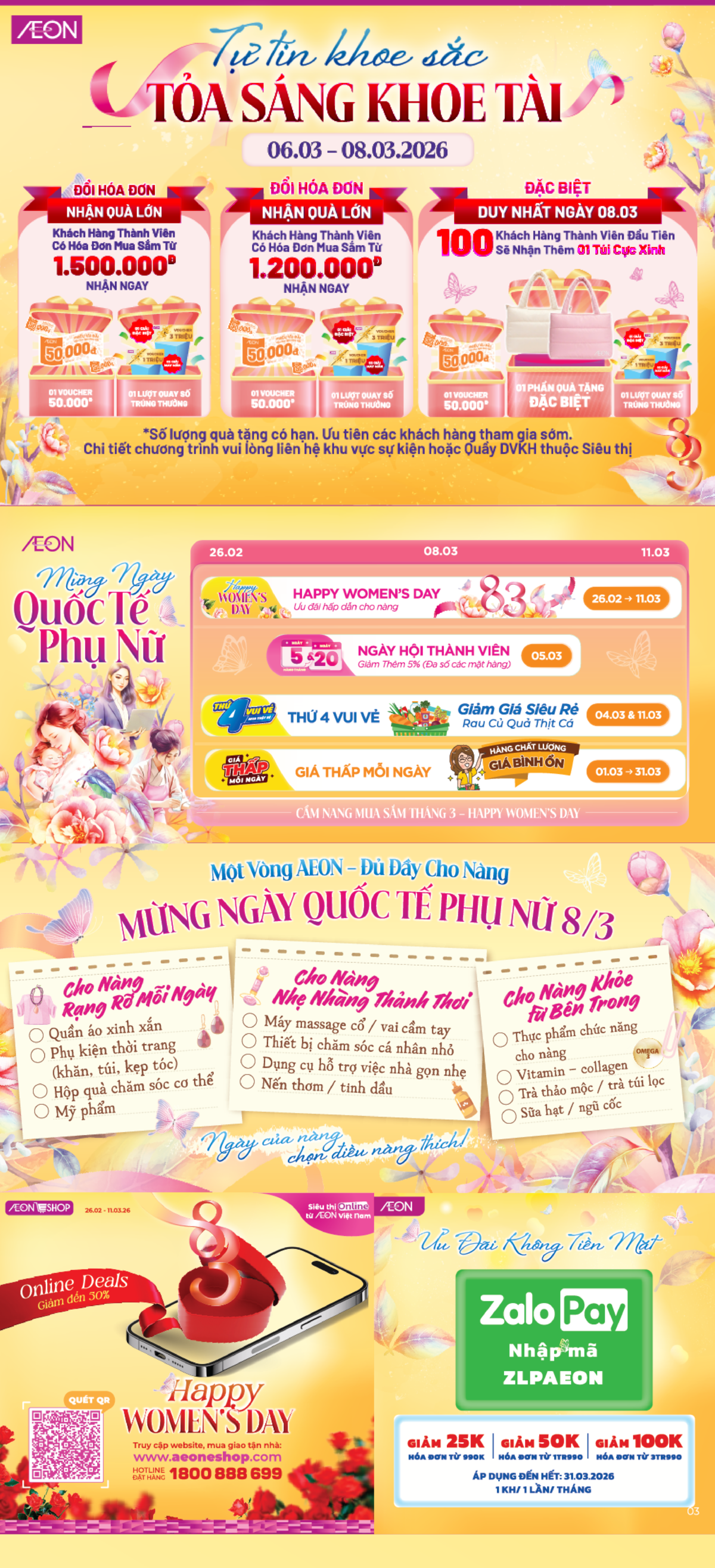 AEON Tân An, AEON Văn Giang, AEON Xuân Thuỷ, AEON MIDORI PARK, AEON Tạ Quang Bửu, AEON Huế, AEON Tân Phú Celadon, AEON Bình Tân, AEON Hà Đông, AEON Long Biên, AEON Hải Phòng Lê Chân, AEON Bình Dương New City, AEON The Nine, AEON Bình Dương Canary, AEON Nguyễn Văn Linh