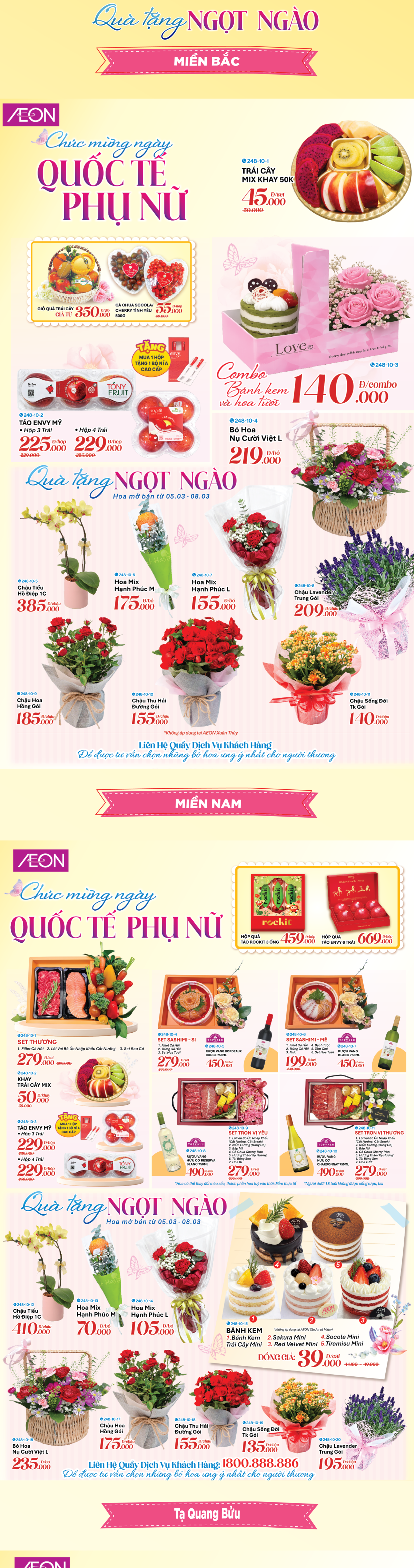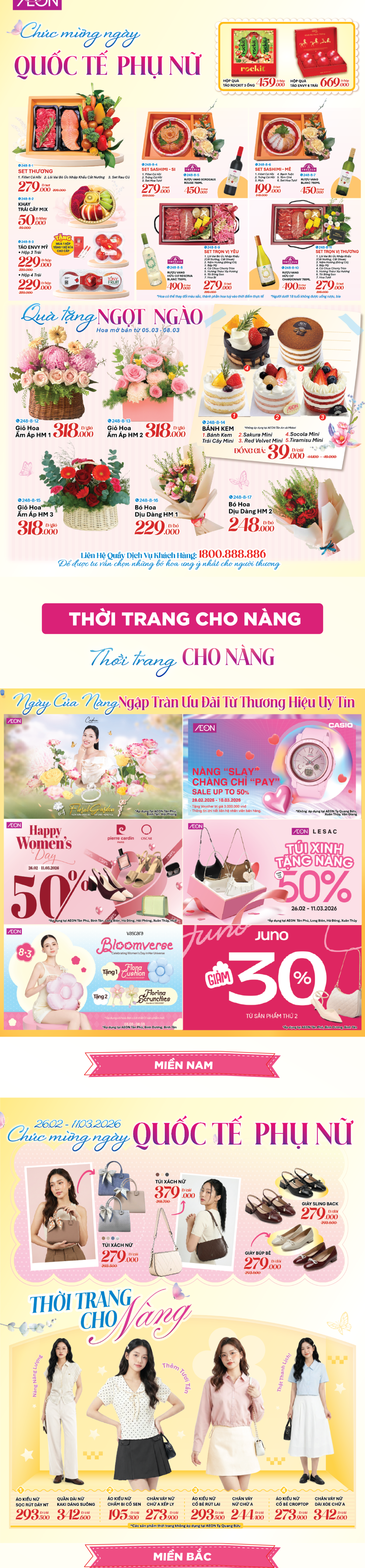 AEON Tân Phú Celadon, AEON Bình Tân, AEON Long Biên, AEON Hà Đông, AEON Tạ Quang Bửu, AEON Xuân Thuỷ, AEON Huế, AEON Tân An, AEON Văn Giang, AEON Bình Dương Canary, AEON Bình Dương New City, AEON Hải Phòng Lê Chân