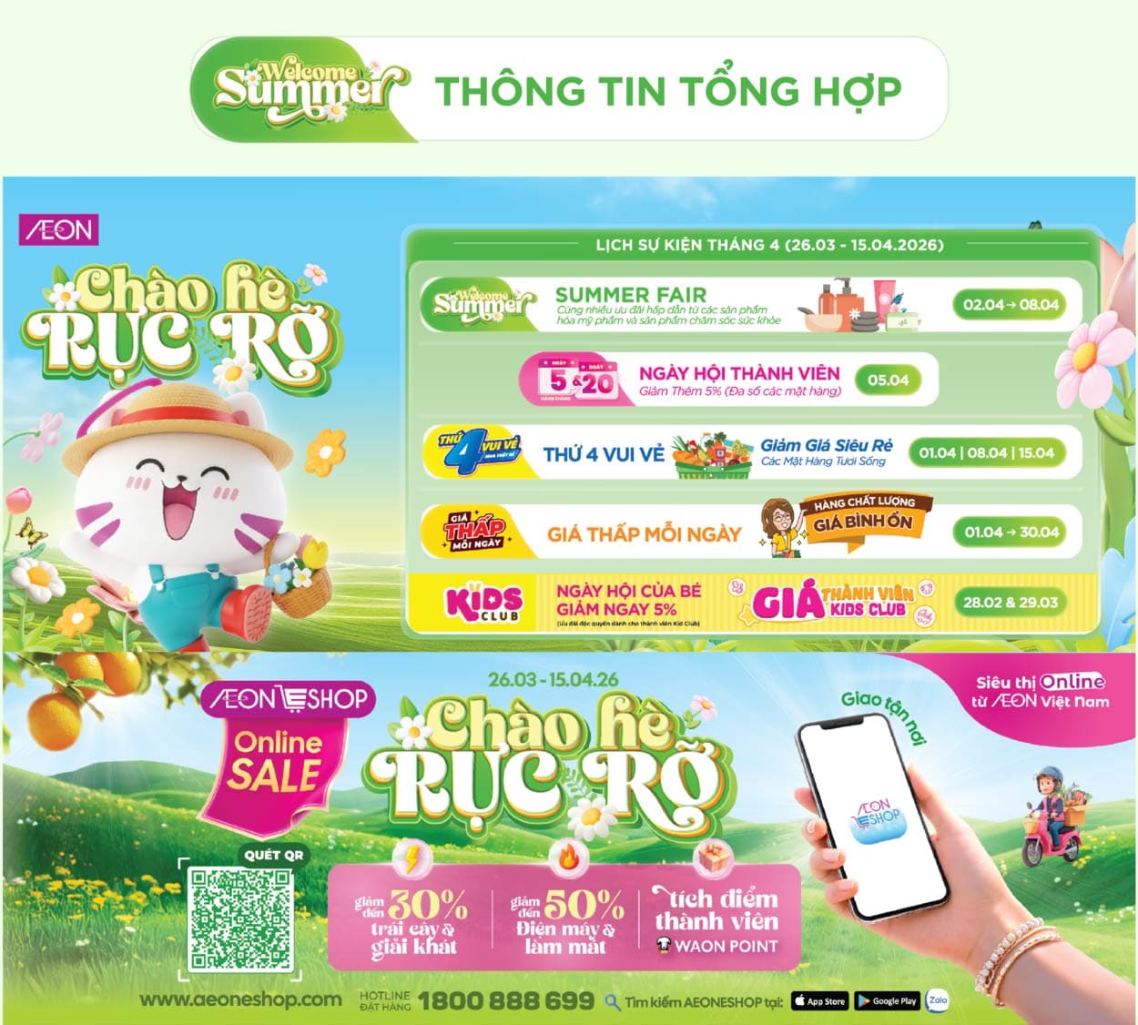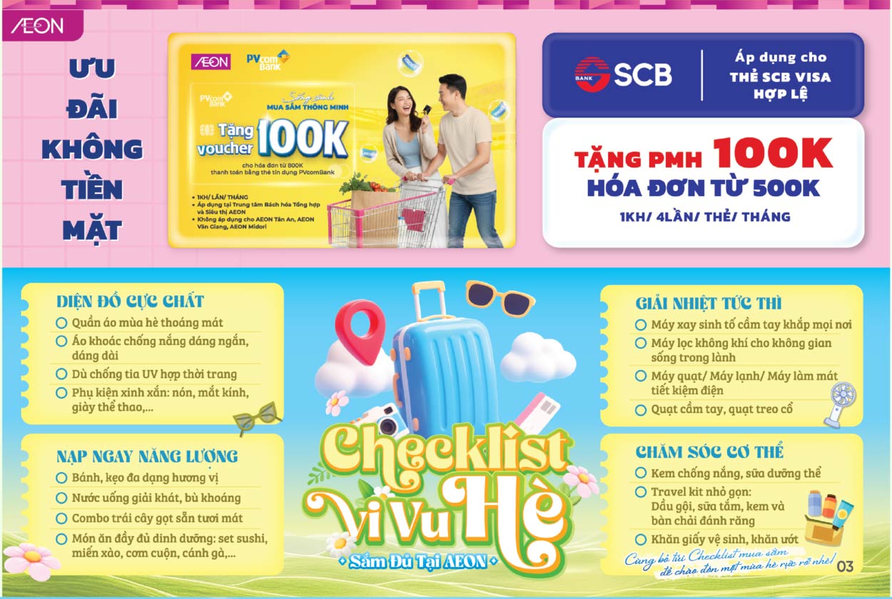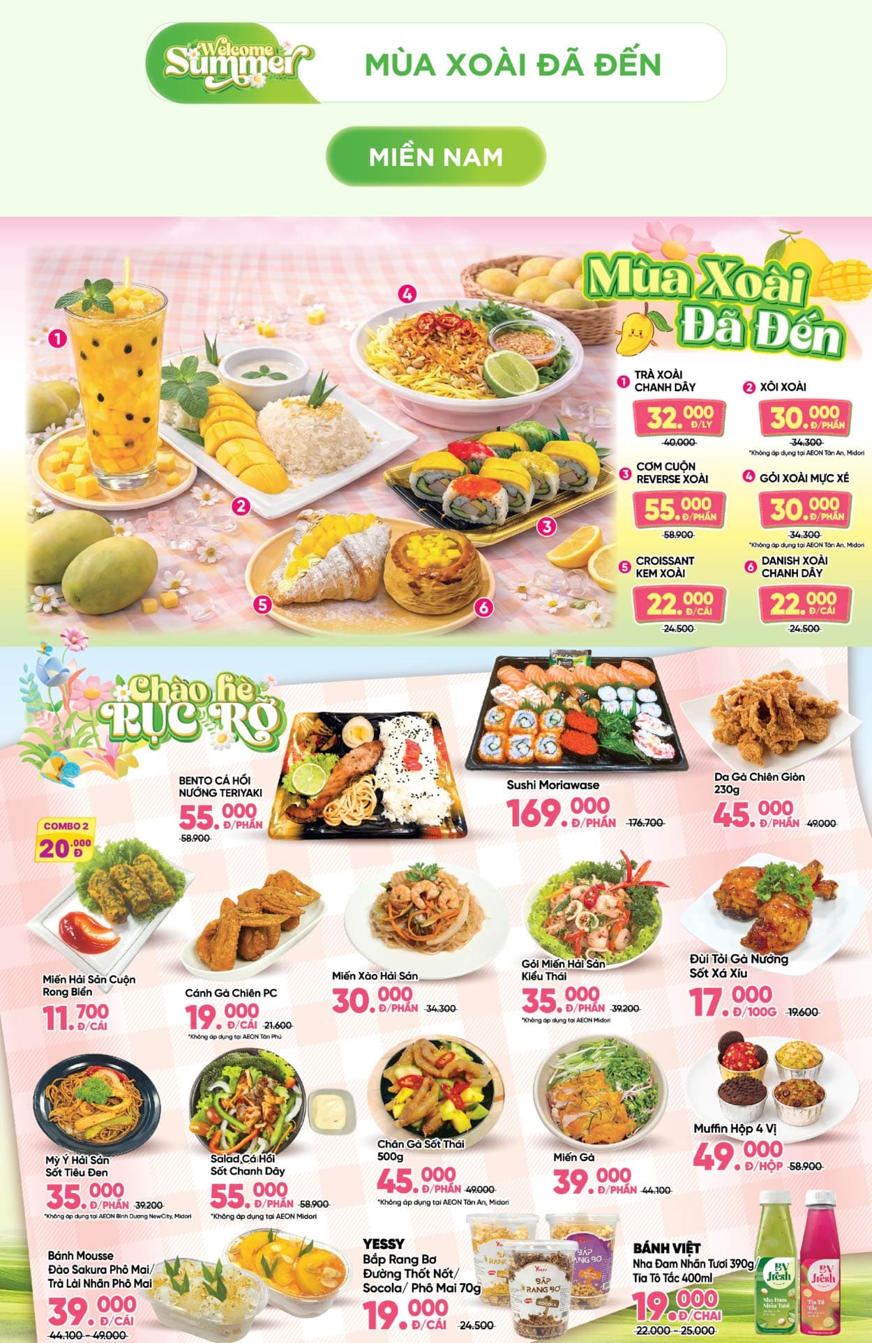 AEON MIDORI PARK, AEON Tân An, AEON Văn Giang, AEON Xuân Thuỷ, AEON Huế, AEON Tạ Quang Bửu, AEON Tân Phú Celadon, AEON Bình Tân, AEON Hà Đông, AEON Long Biên, AEON Hải Phòng Lê Chân, AEON Bình Dương Canary, AEON Nguyễn Văn Linh