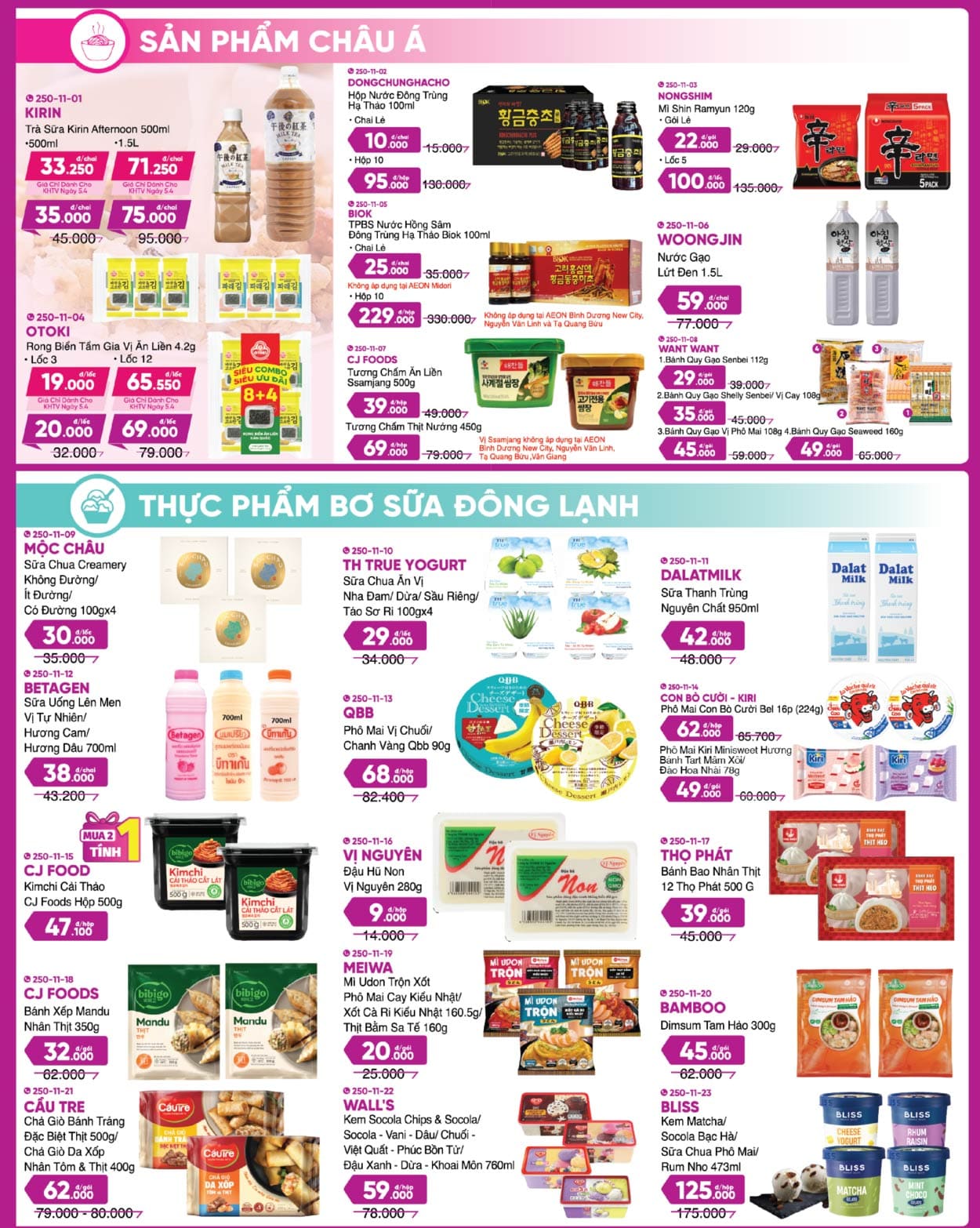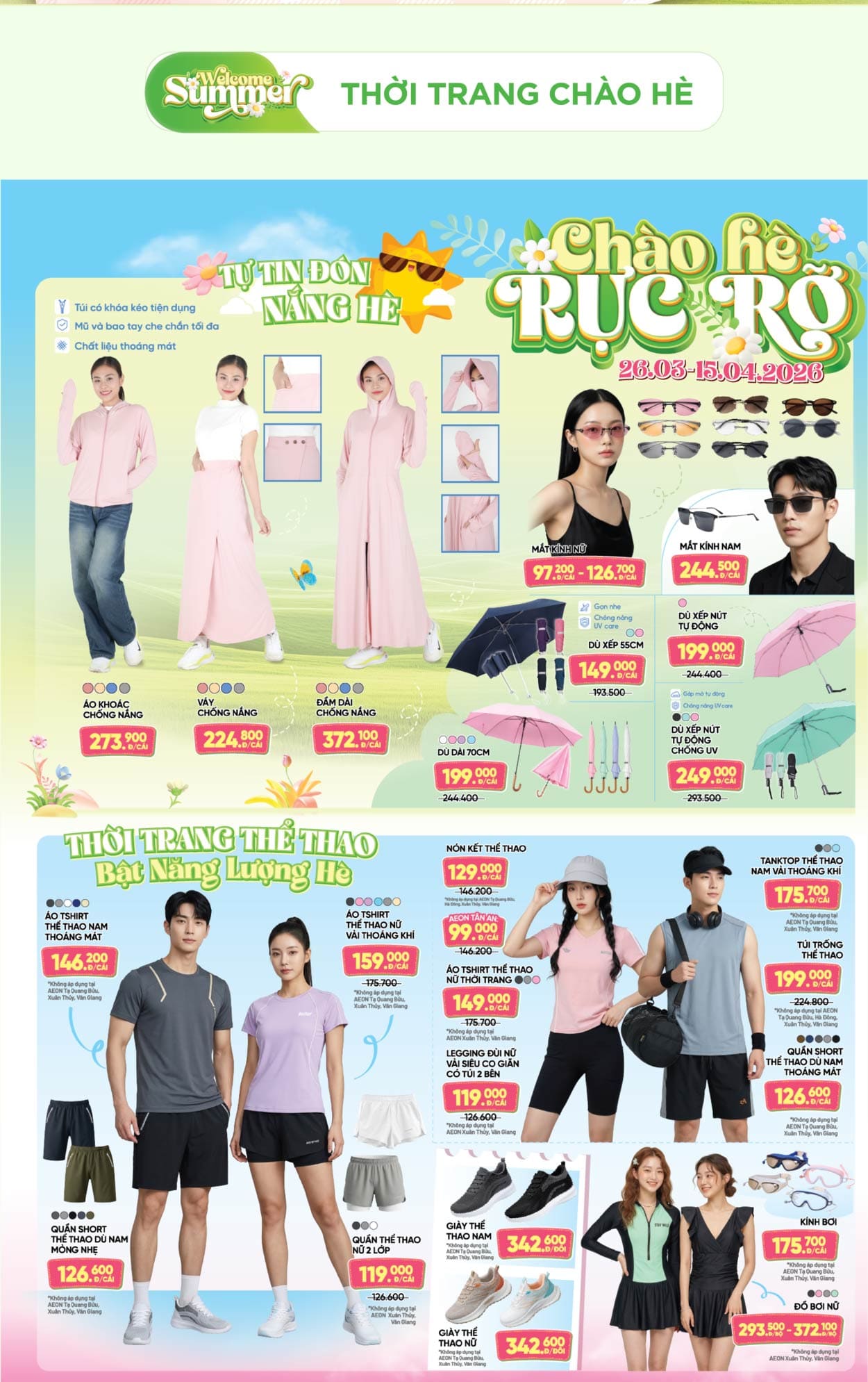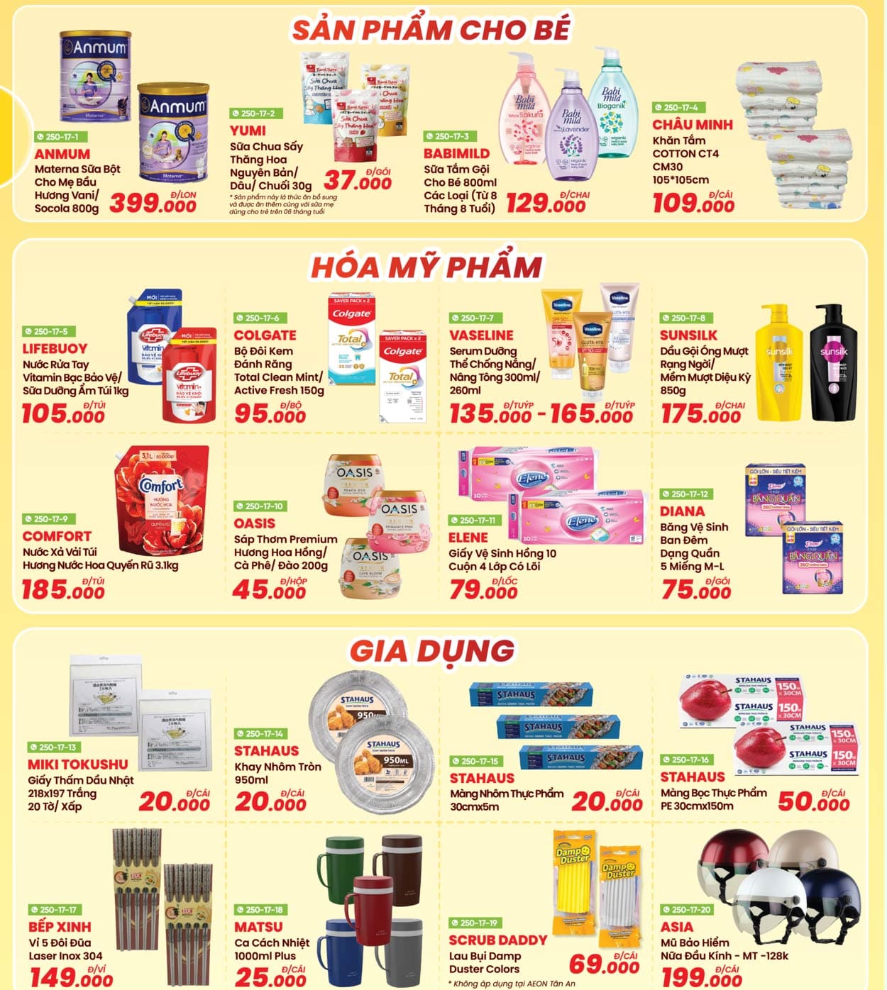 AEON MIDORI PARK, AEON Tân An, AEON Văn Giang, AEON Xuân Thuỷ, AEON Huế, AEON Tạ Quang Bửu, AEON Tân Phú Celadon, AEON Bình Tân, AEON Hà Đông, AEON Long Biên, AEON Hải Phòng Lê Chân, AEON Bình Dương Canary, AEON Nguyễn Văn Linh