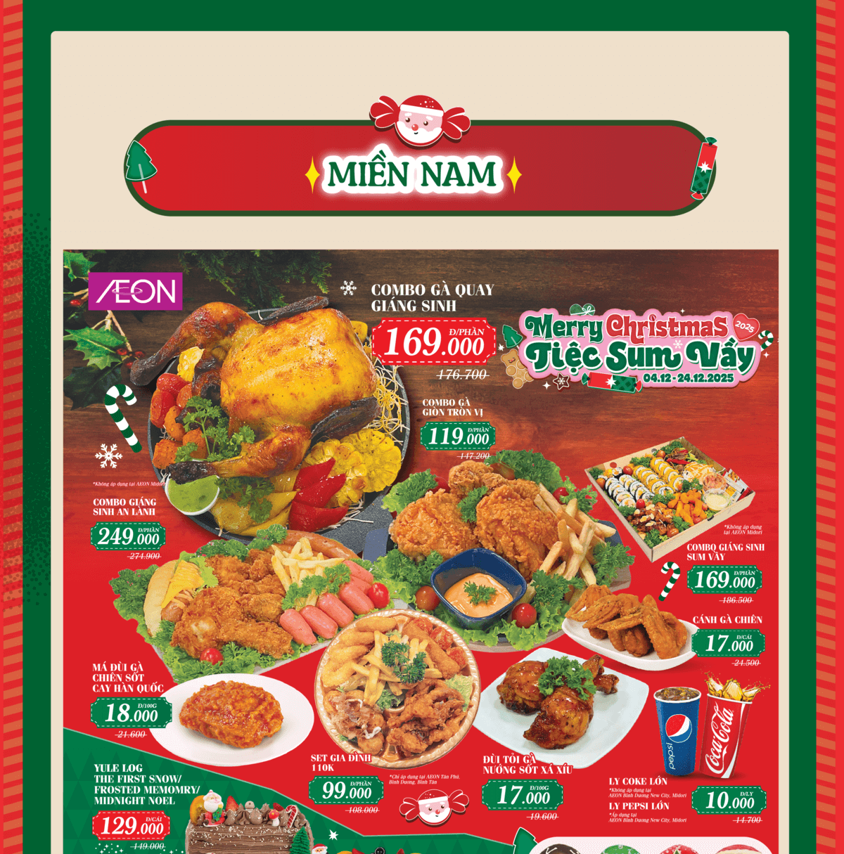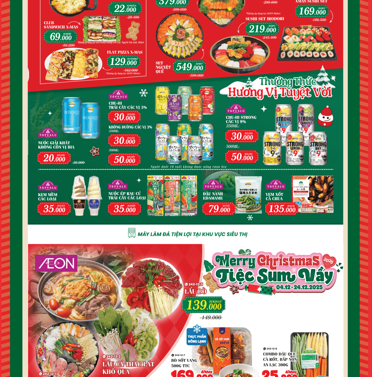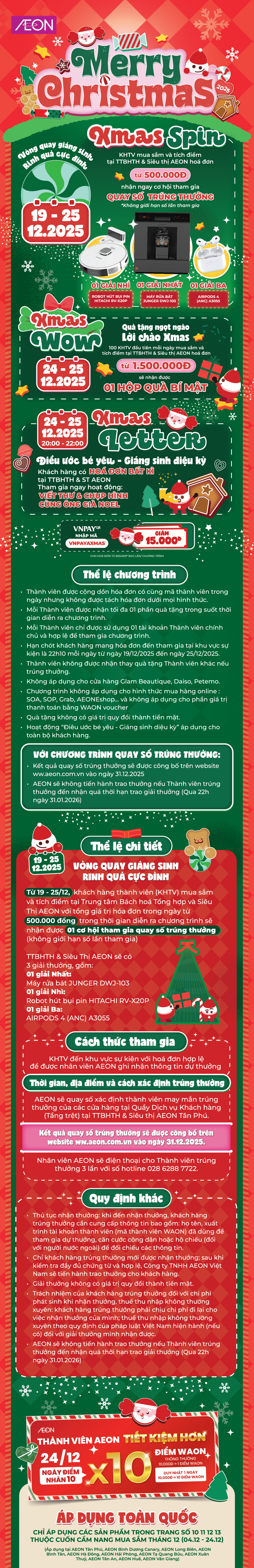 AEON MIDORI PARK, AEON Xuân Thuỷ, AEON Tân An, AEON Văn Giang, AEON Tân Phú Celadon, AEON Bình Tân, AEON Tạ Quang Bửu, AEON Nguyễn Văn Linh, AEON Hà Đông, AEON Long Biên, AEON Hải Phòng Lê Chân, AEON Bình Dương Canary, AEON Bình Dương New City, AEON The Nine, AEON Huế